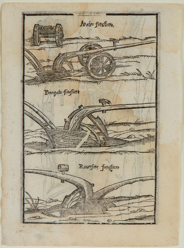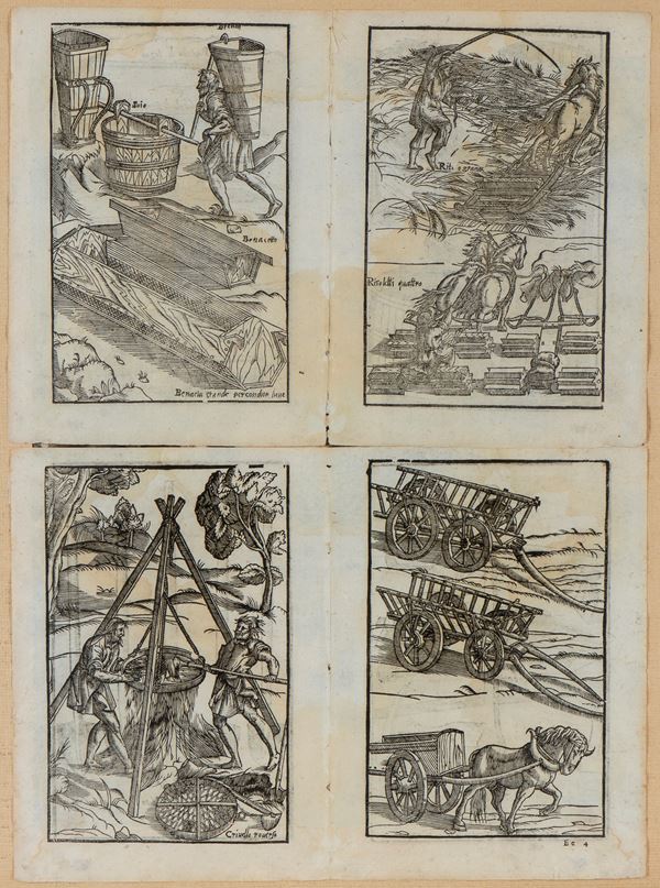 Lotto di 5 xilografie dal celebre trattato "Le vinti giornate dell'Agricoltura" di Agostino Gallo, stampato per la prima volta a Venezia nel 1569.