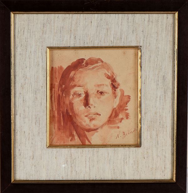 Matita e acquarello rosso, 140 x 125 mm ca. Firmato in basso a destra.