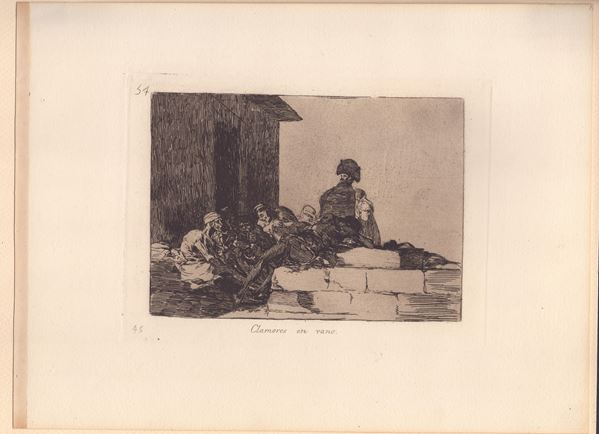 acquaforte, lavis, 154 x 206 mm (lastra), 244 x 325 mm (foglio). Dalla serie Los Desastres de la Guerra. Harris 173. Splendida, ben inchiostrata, nitida impressione con toni profondi su carta non vergata con filigrane. Foglio in ottime condizioni. Con passe-partout.