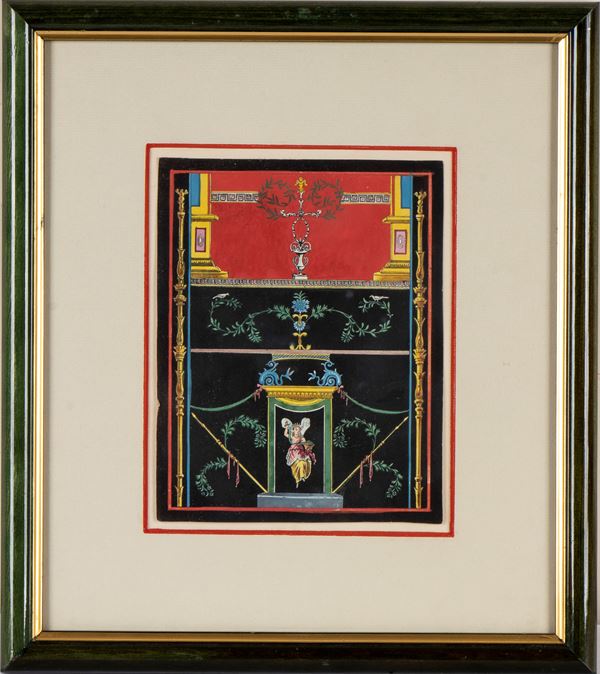 Lotto di 4 litografie colorate a mano a gouache, 195 x 150 mm ca. (cad). In ottimo stato di conservazione, ciascuna con passe-partout e cornice (36 x 32 x 2 cm)
