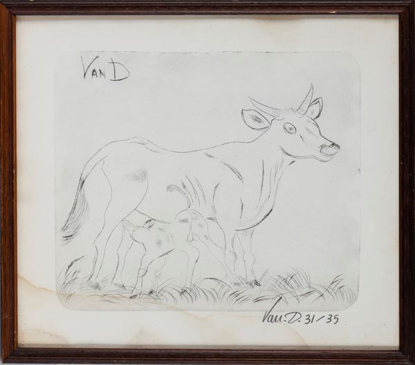 Acquaforte, 245 x 290 mm (lastra), 320 x 365 mm (foglio). Siglato in lastra e a matita Van. D. Tiratura 31/35