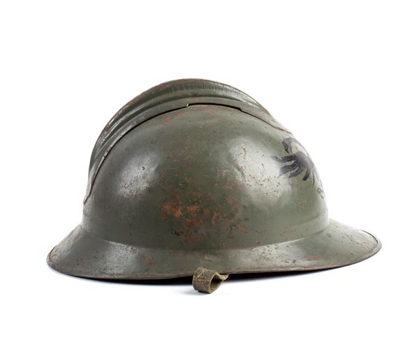 Elmetto modello 16 di fabbricazione italiana con dipinta frontalmente grande aquila bicipite Albanese, probabilmente appartenente ad unità della guardia precedenti il regno di Re Zog. In ottimo stato.