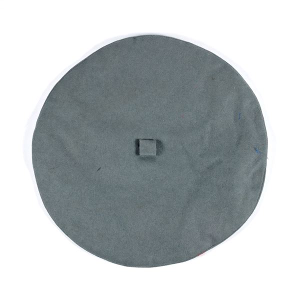 Basco in castorino di lana grigio con bel fregio da ufficiale della regia Marina ricamato in cotone nero su fondo grigio, foderato all'interno, di forma molto ampia, in ottimo stato, manca il grado.