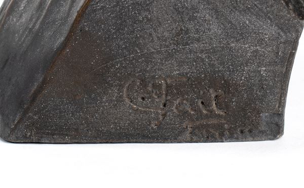 Bel bustino in bronzo gettato di Benito Mussolini, con base, firmato alla spalla con firma illeggibile, in buono stato.