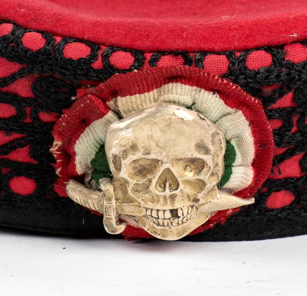 Rarissima Lika delle "Bande VAC" (Volontari Anti Comunisti), formazione croata inquadrata nella Milizia e operante in funzione anti guerriglia sul fronte orientale, sul copricapo tradizionale è applicata piccola coccarda in lana con particolare teschio in metallo argentato. Molto rara, in ottimo stato.