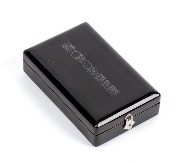 Coniato in argento, con nastro originale, conservata nel suo astuccio originale in legno laccato foderato di seta viola, in ottimo stato