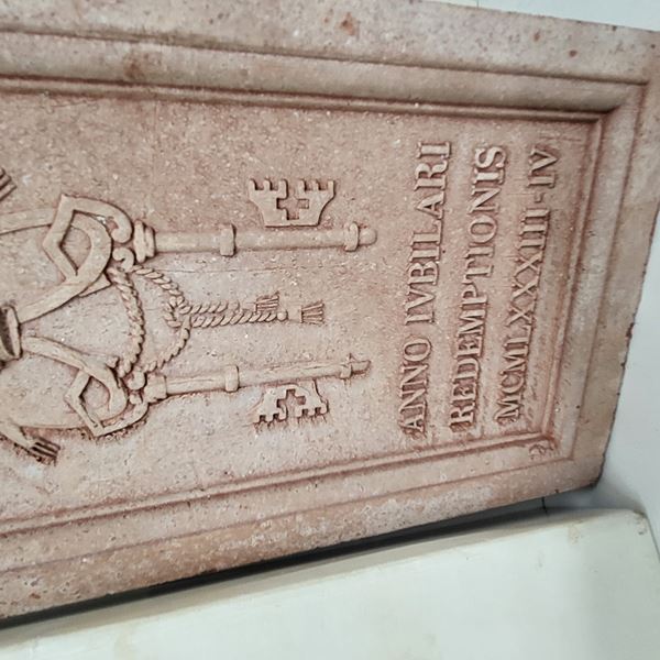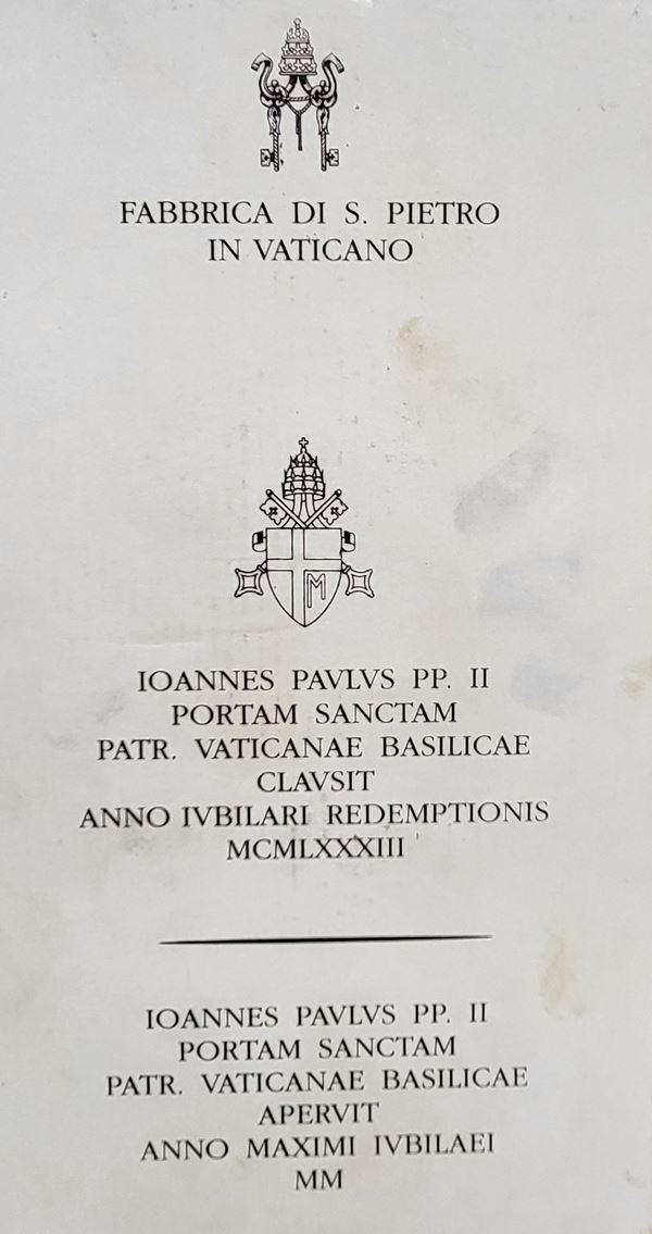 Mattone in terracotta della Fabbrica di San Pietro in Vaticano, Porta Santa della Basilica di S.Pietro, per l'anno Giubilare del 2000 sotto il pontificato di Papa Giovanni Paolo II , Karol Józef Wojtyła, in cofanetto originale in cartone. Perfette condizioni, misure circa cm.28x13.5