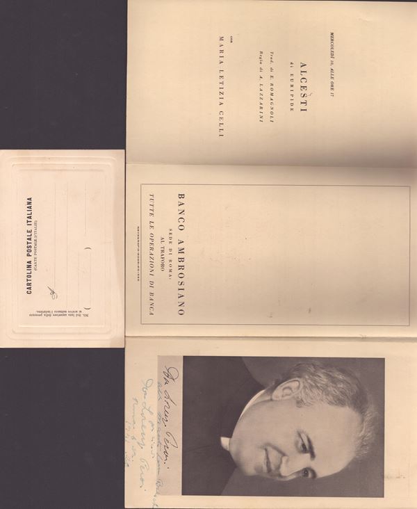 Insieme una cartolina con ritratto fotografico del presbitero in età giovanile, con dedica e firma non meglio identificata "I miei saluti in compagnia al genio di musica paradisiaca - A.N."