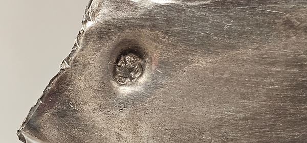 Argento 800/1000, punzonata con il marchio in uso in Italia tra il 1873 e il 1935.