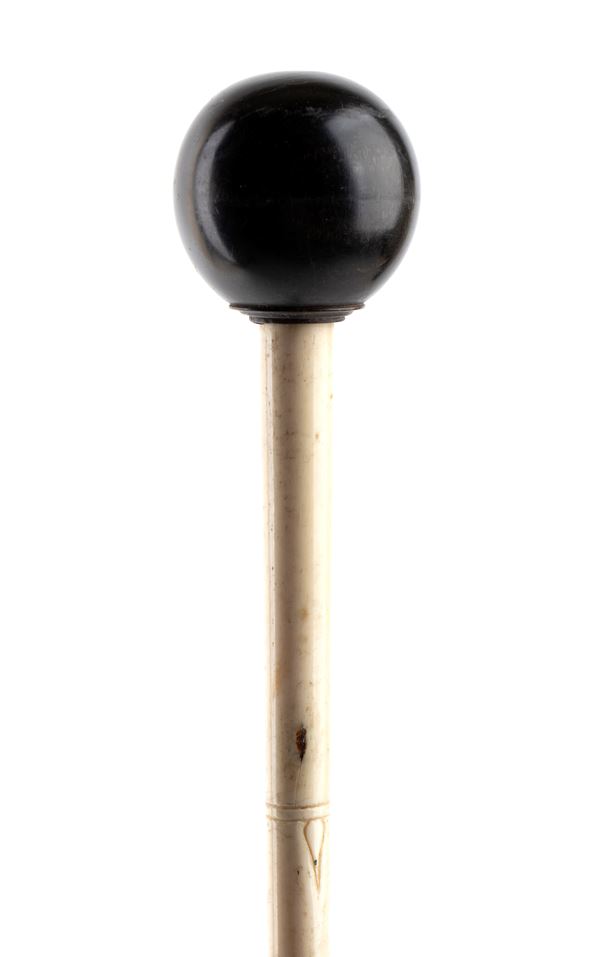 fusto in osso con impugnatura a pomolo e terminale in legno ebanizzato