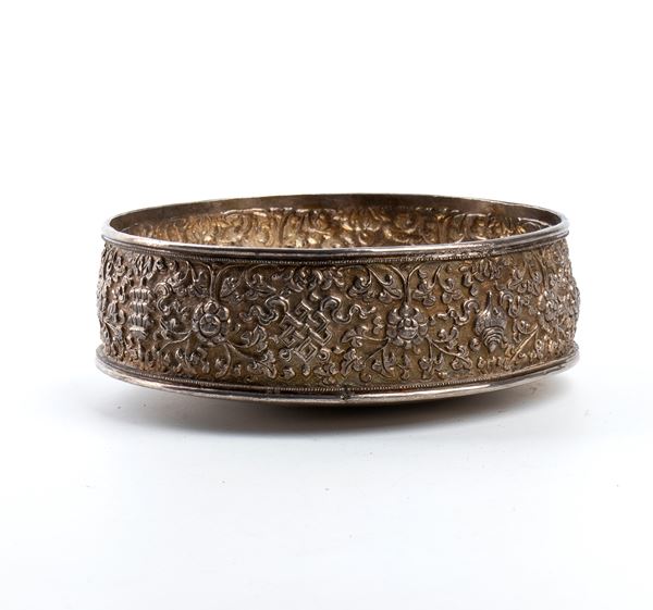 di forma circolare con decorazioni a volute fogliate e floreali.