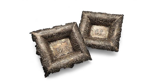 Coppia di posacenere vittoriani inglesi in argento , Londra, 1891