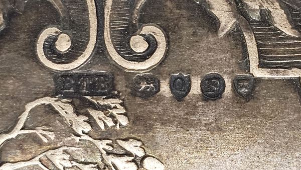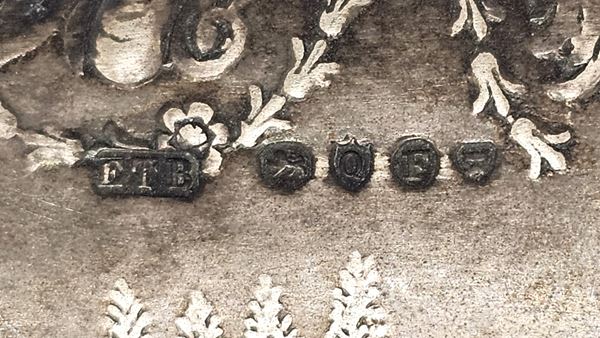 Argento 925/1000, punzonati con la serie completa dei marchi per l'argento in uso a Londra nel 1891-92, argentiere Edwin Thompson Bryant (1890-1907).