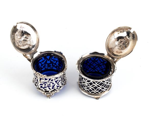 Due mostardiere vittoriane inglesi in argento, Londra 1840