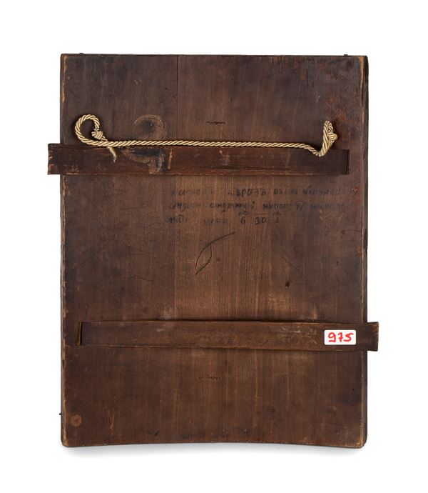 tempera su tavola raffigurante al centro San Nicola in vesti episcopali, che tiene nella mano sinistra l'Evangelario e con la mano destra fa il gesto benedicente, presentato secondo la raffigurazione tipica della chiesa ortodossa russa nel culto del Santo. Alla sua sinistra l'icona di Gesù Cristo e alla sua destra quella della Vergine Maria. Il Santo è circondato da 12 scene raffiguranti episodi salienti della sua vita, dalla nascita alla morte, che lo hanno portato alla beatificazione.