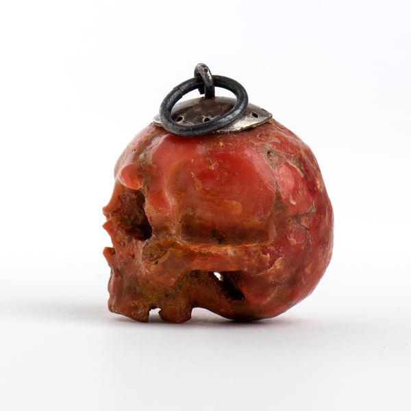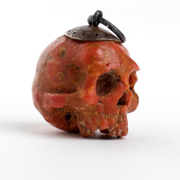 "Memento Mori" Vanitas rappresentata da un teschio in corallo rosso del Mediterraneo (Corallum Rubrum) scolpito a tutto tondo;