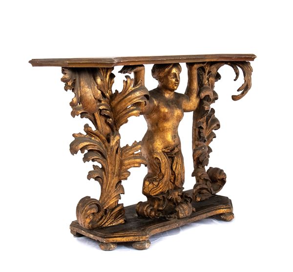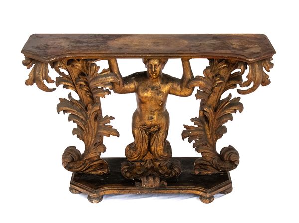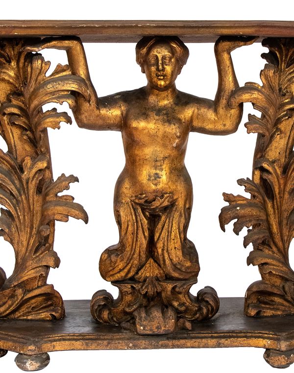 Consolle Luigi XVI italiana in legno dorato, XVIII secolo