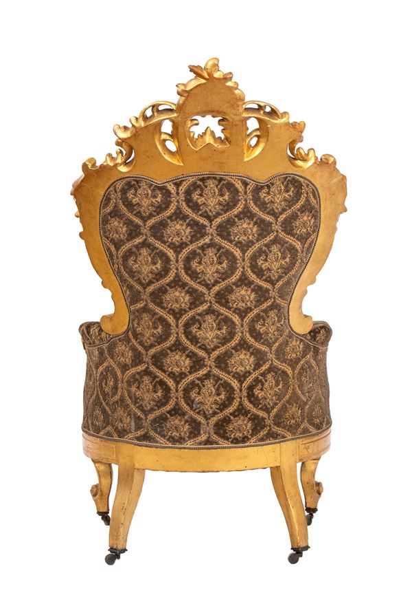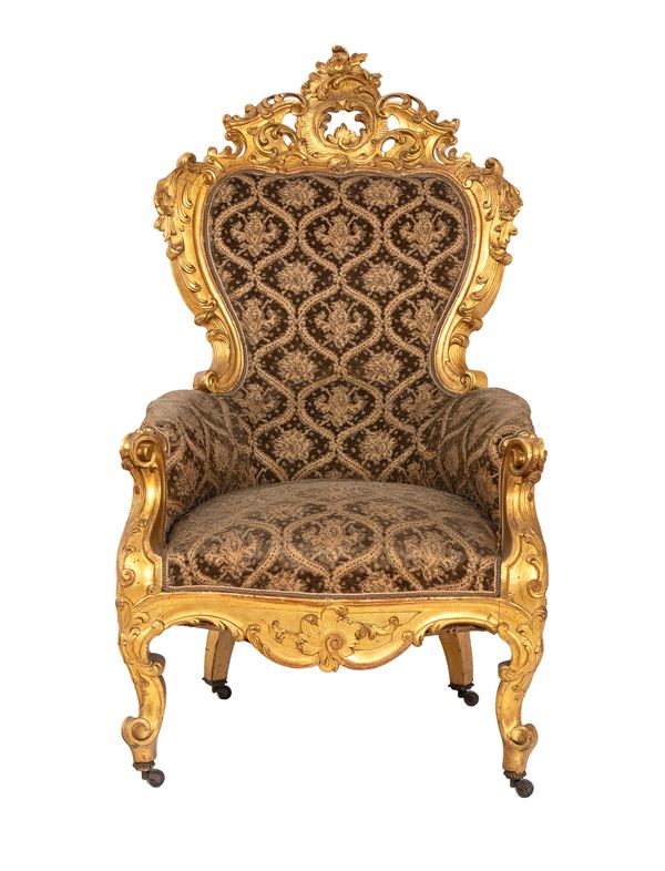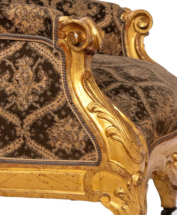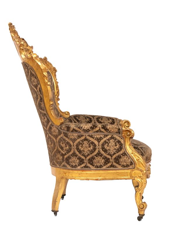 importanti poltrone intagliate e dorate a foglia d'oro.