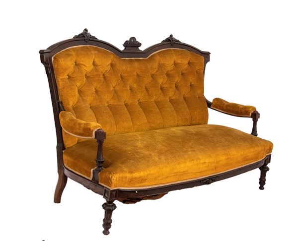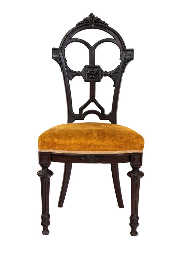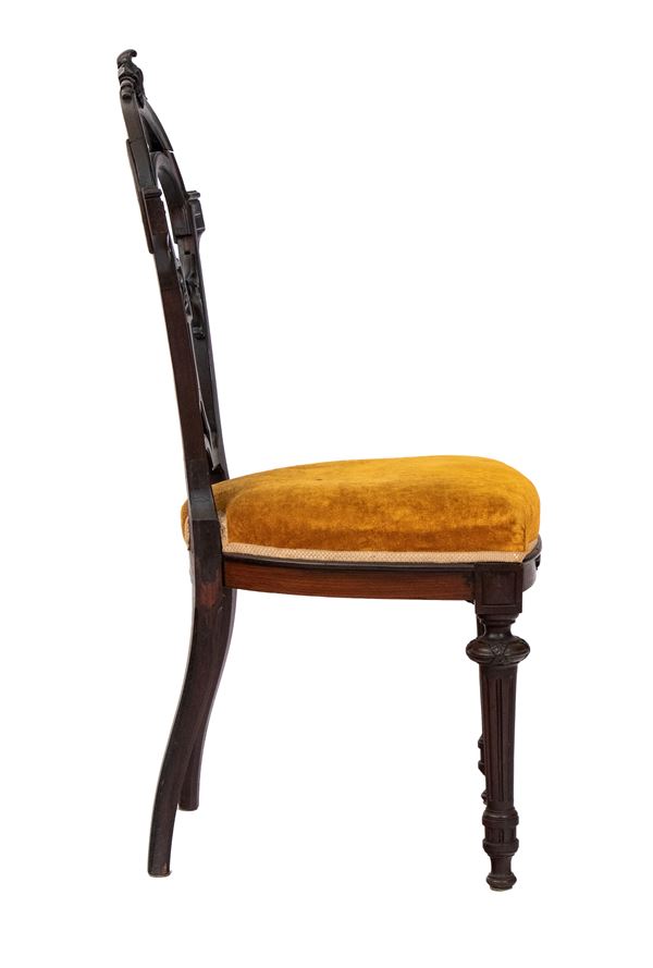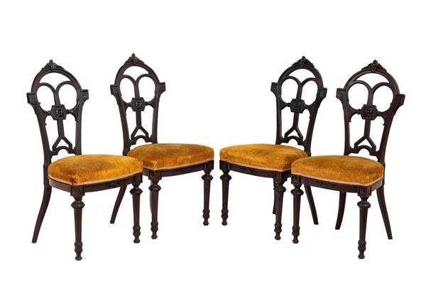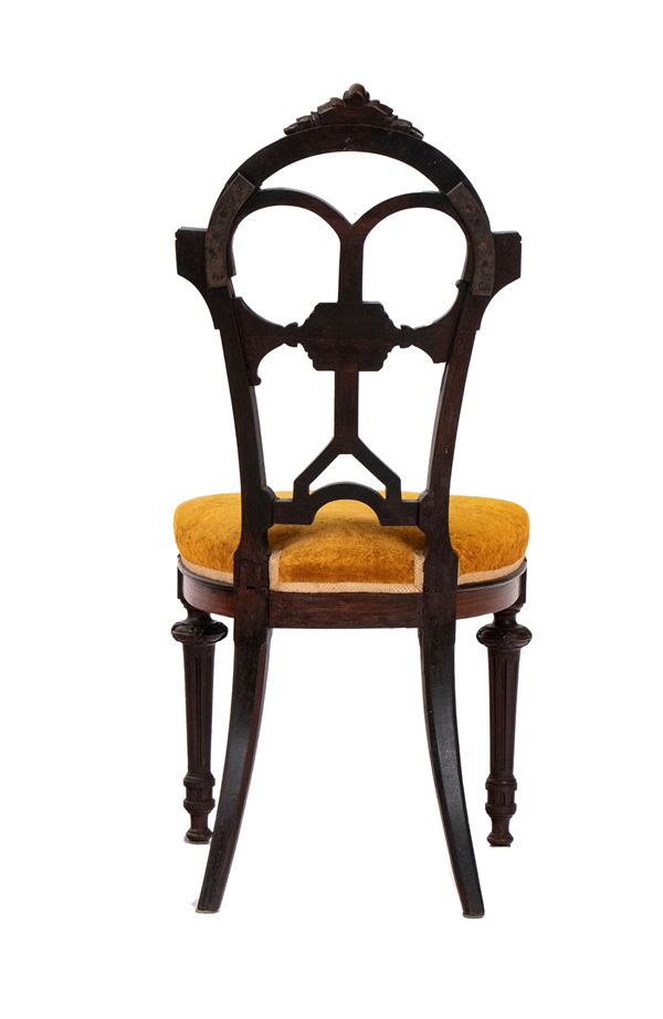 in legno di palissandro, sedie e divano intagliati nelle classiche forme del periodo Luigi Filippo francese.