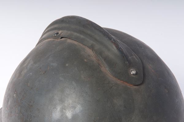 modello 1915 "Adrian", da campo maschile. Di produzione francese ed in dotazione anche all'esercito italiano,è composto da calotta, visiera, coprinuca e crestina copri sfiatatoio. L'elmetto è sprovvisto di sottogola.