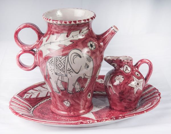 due versatoi di cui uno firmato Pinto ed un vassoio ovale firmato di Di Mauro.