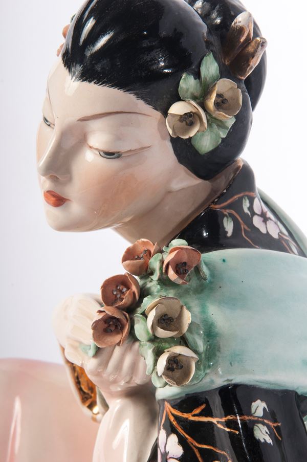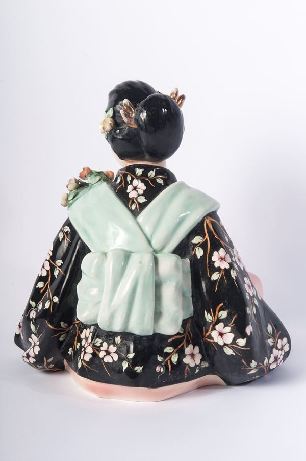 scultura a tutto tondo in ceramica policroma con formatura a colaggio.