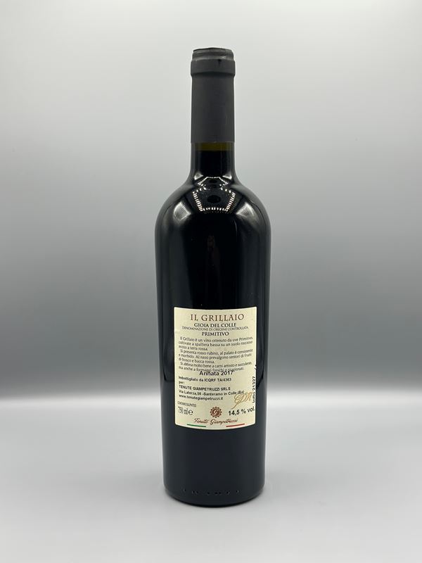"Puglia, Il Grillaio - 1 bottiglia (bt), annata 2017.<br>