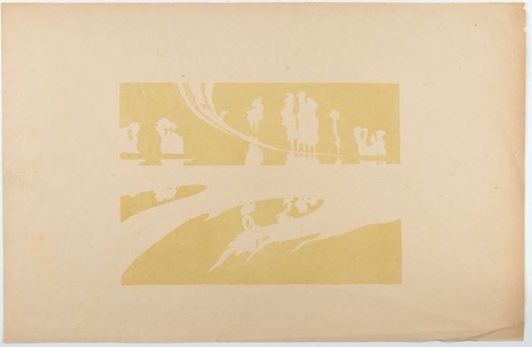 Lotto di tre prove di stampa: a un colore, a due colori e a tre colori. Litografia, 352 x 540 mm cad. foglio.