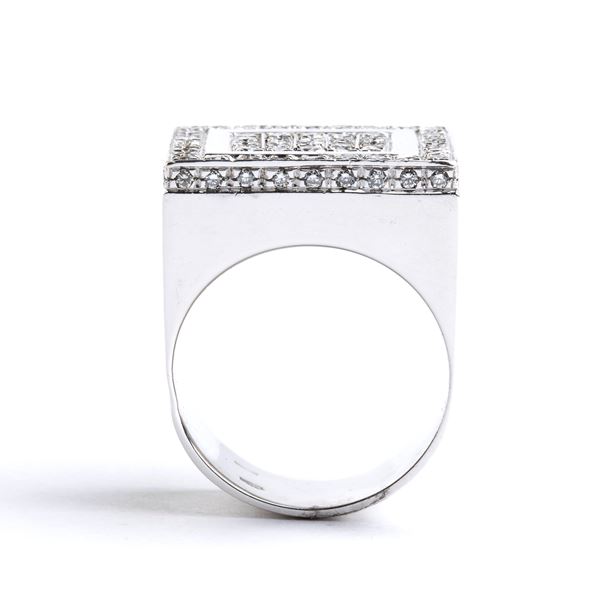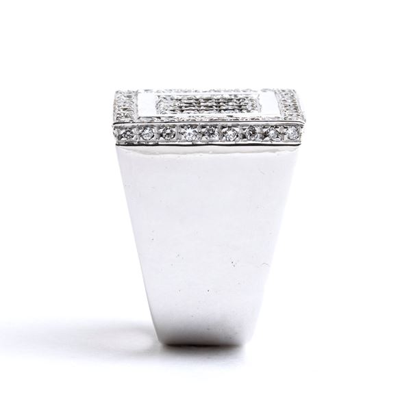 Dimensione fronte: 1,8 x 1,8 cm. Misura ITA 16 - Misura USA 7 1/2. Peso: 18,2 gr.