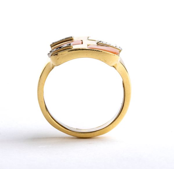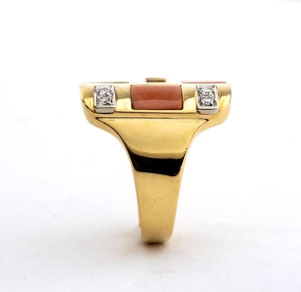 Anello in oro con corallo e diamanti