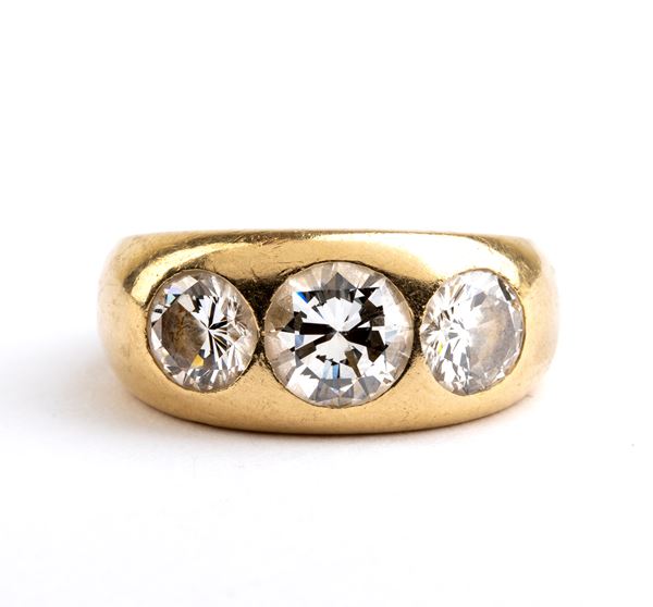 montatura a fascia in oro giallo 18k, incastonato con linea di diamanti.