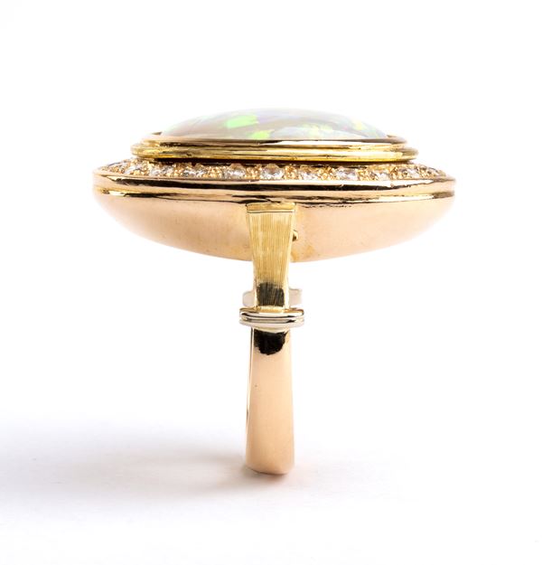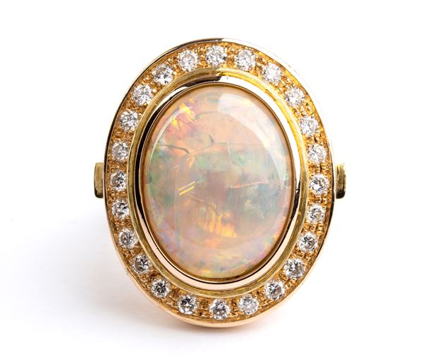 Anello in oro con opale e diamanti