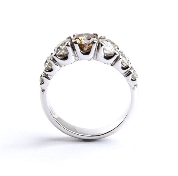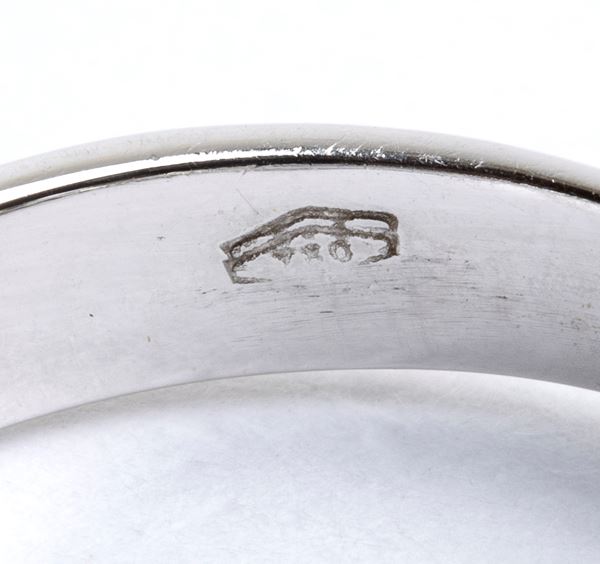 in oro bianco 18k, incastonato con linea di sette diamanti.