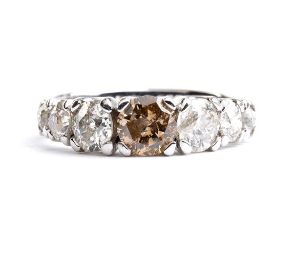 N. 01 diamante di forma rotonda, taglio brillante, circa 0.60 ct, colore fantasia marrone, SI.