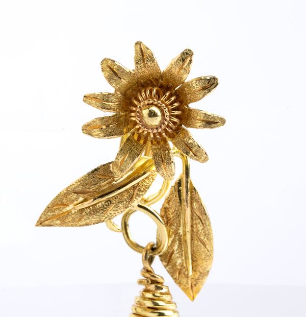 montatura a forma di girasole, con sfera di corallo Cerasuolo pendente (Corallium Eliatus).