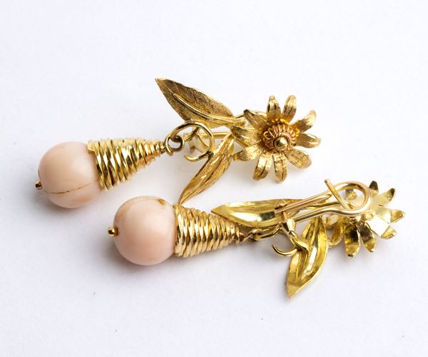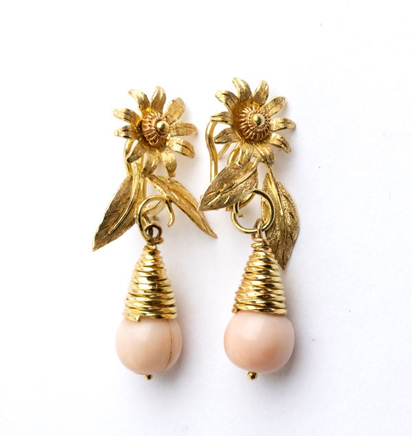 Paio di orecchini pendenti in oro e corallo Cerasuolo
