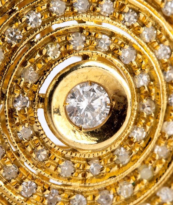 in oro giallo 18k, con motivo di cerchi concentrici in diamanti.