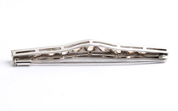 in oro bianco, di forma a barretta, incastonata con linea di diamanti taglio a rosa.