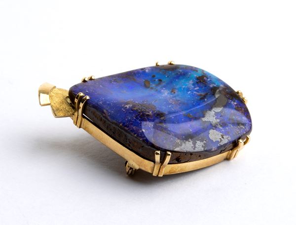 montatura in oro giallo 18k , incastonato con boulder di opale Australiano.