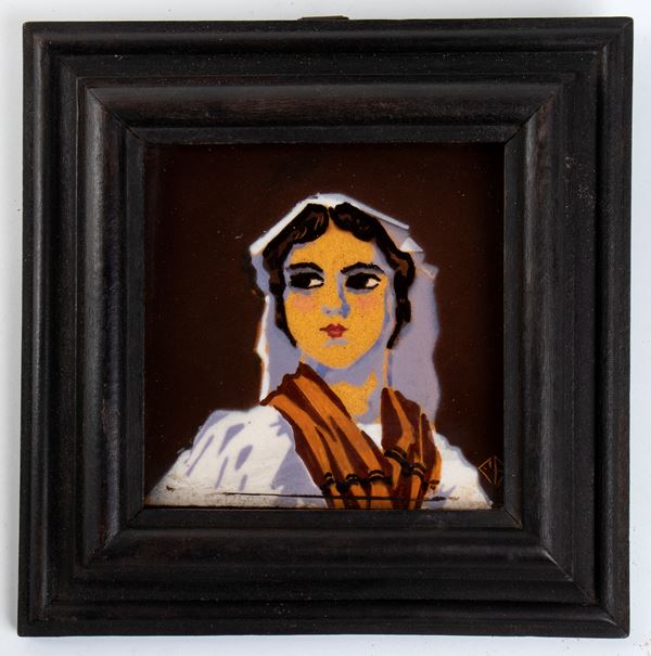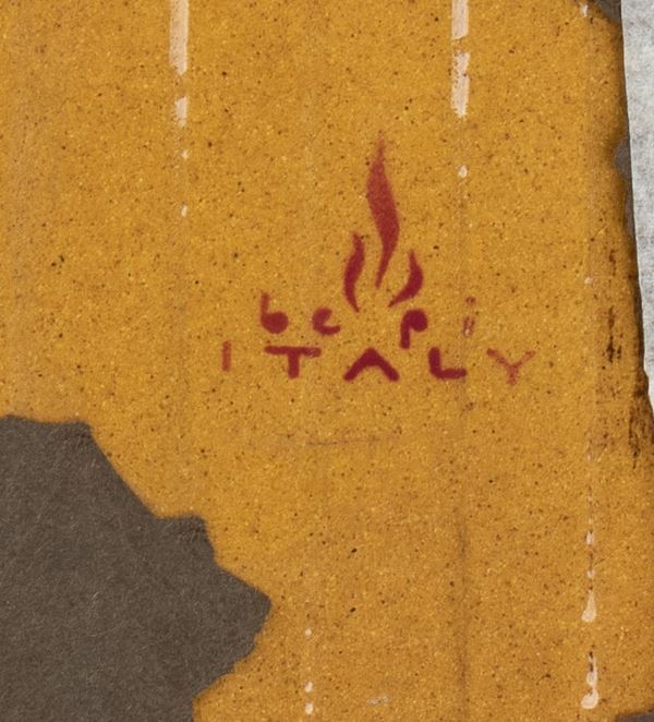 Firmata con monogramma in basso a destra. Al retro firma Manifattura "Fiamma" di Ferruccio Palazzi in Roma