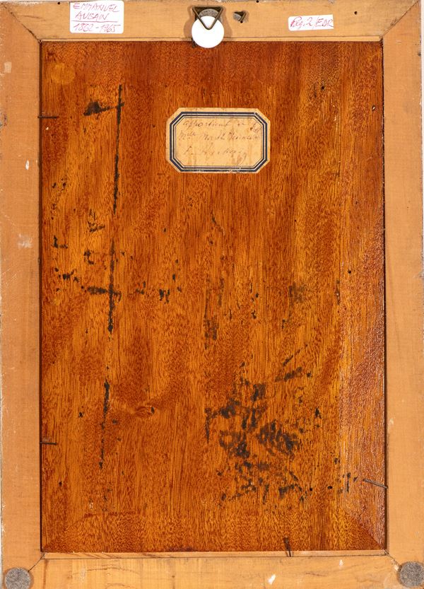 Firmato in basso a destra: E. Aubain. Dedicato e firmato sul retro
