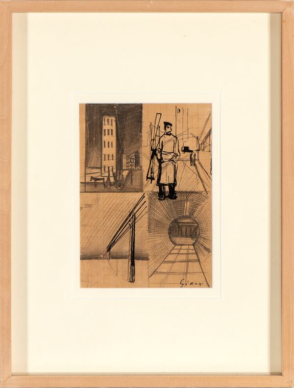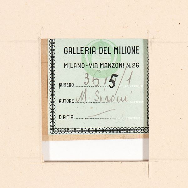 Firma apocrifa in basso a destra: Sironi. Al retro etichetta della Galleria del Milione di Milano