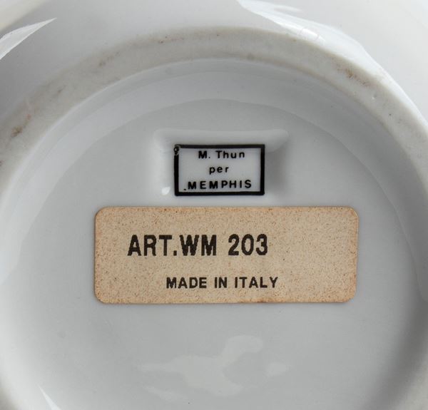 Prodotto dal brand Memphis Milano, timbro sul fondo: M. Thun per Memphis
