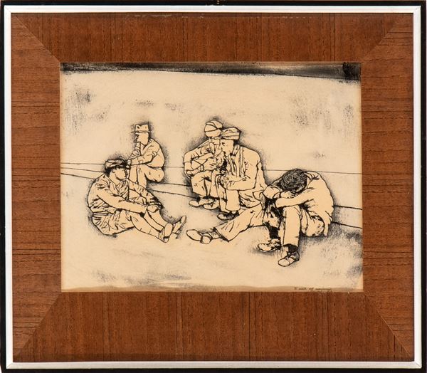 Titolo, firma e data in basso a destra: Il cortile del manicomio, Vespignani, 1948