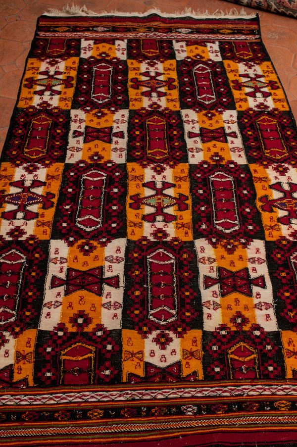 a grandezze diverse: tappeto Heriz 328 x 272 cm ; tappeto persiano 274 x 192 cm ; tappeto pechino blu 180 x 123 cm ; tappeto Bukara 117 x 61 cm ; tappeto caucasico 138 x 96 cm; tappeto kilim 210 x 1,14 cm; tappeto kilim 135 x 75 cm ; tappeto kilim 200 x 135 cm ; tappeto kilim ( sotto sella) 108 x 110 cm; tappeto kilim 115 x 68 cm ; tappeto 87 x 47 cm; tappeto 61 x 40 cm