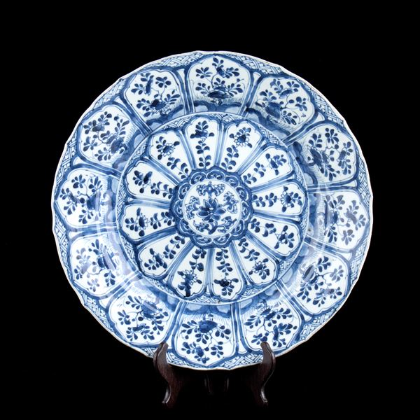 Coppia di grandi piatti in porcellana "bianco e blu", Cina, dinastia Qing (1644-1912)