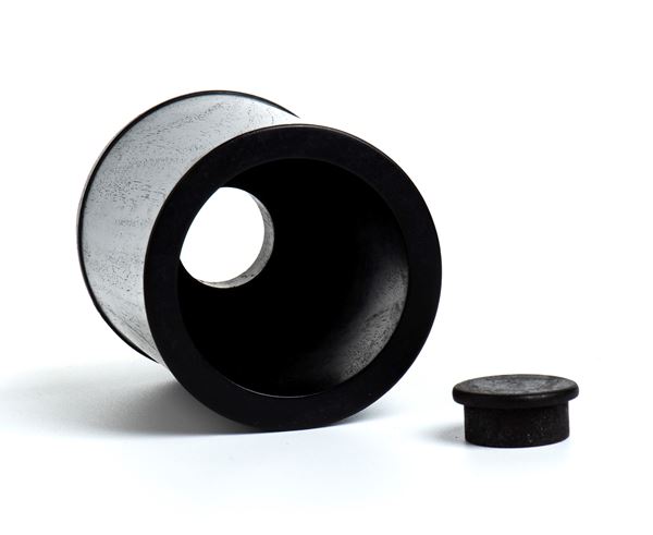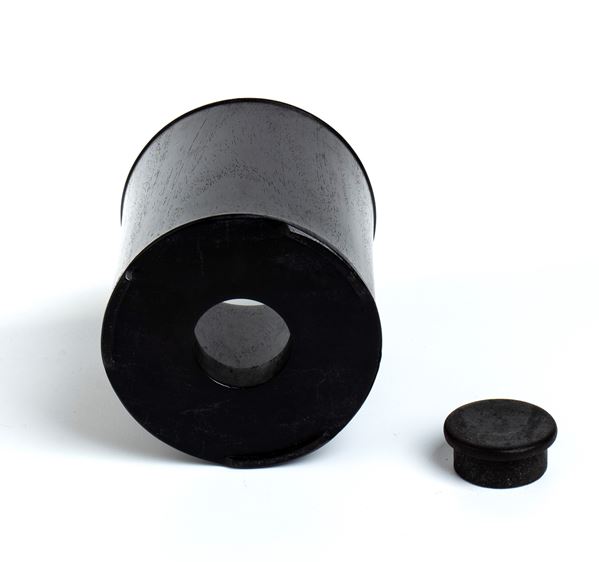 Elegante porta pennelli (bitong) in legno scuro, con tre piedini di appoggio e tappo in legno per il foro al centro della base.
