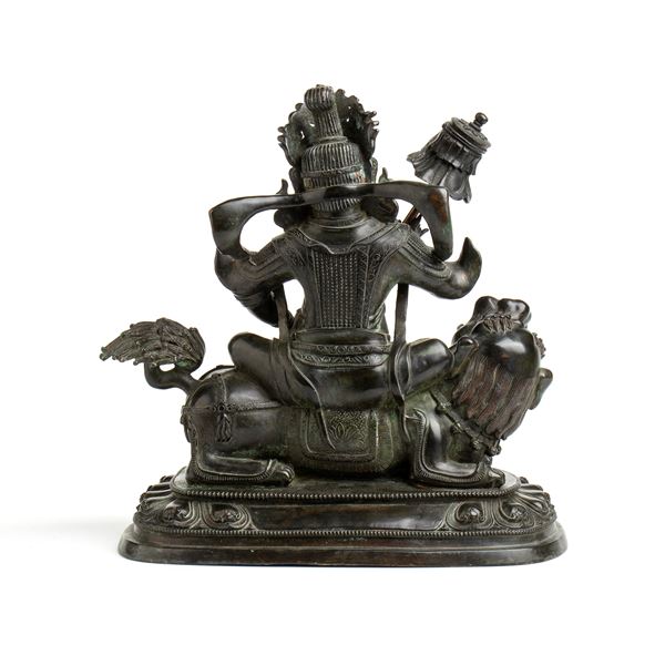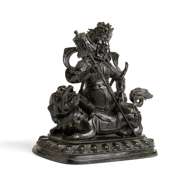 Figura in bronzo di Vaishravana, Cina, Tibet, dinastia Qing, XIX secolo.