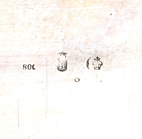 Argento 800/1000, punzonato con i marchi per l'argento al titolo di 800/1000 in uso in Germania dal 1888.