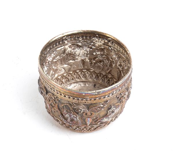 Ciotola Thabeik birmana in argento, XIX secolo